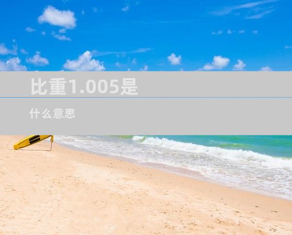 什么是比重1.005?比重1.005是一个常见的物理量,通常用于描述液体的密度。密度是物质的质量与体积的比值,而比重则是物质的密度与某个标准物质的密度之比。比重1.005表示物质的密度是标准物质密度的1.005倍。比重1.005的应用比重1.005在实际应用中有很多用途。以下是一些常见的应用:1. 测量液体密度比重1.005通常用于测量液体的密度。通过将待测液体与已知比重为1.005的标准液体混合,可以根据混合后的比重计算出待测液体的密度。这种方法通常用于实验室中的化学分析。