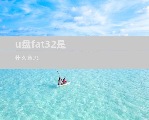 U盘FAT32是什么意思U盘是现代人生活中必不可少的一种存储设备,而FAT32则是U盘常见的一种文件系统。那么,U盘FAT32是什么意思呢?1. 什么是U盘?U盘是一种便携式存储设备,也被称为闪存盘、存储盘、移动硬盘等。它的体积小、重量轻、容量大、传输速度快,非常适合用于存储、传输数据。U盘的外形多样,常见的有方形、圆形、长条形等不同形状。2. 什么是文件系统?文件系统是指计算机系统中用于管理和组织文件的一种机制。它是操作系统的一部分,负责管理存储设备上的数据,包括文件的存储、读取、删除、修改等操作。常见的文件系统有FAT、NTFS、EXT等。