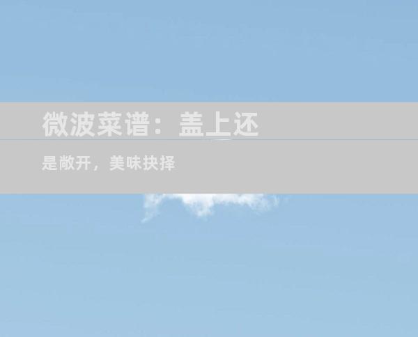 对于微波炉烹饪来说,是否使用盖子是一个常见的疑问。本文将从多个角度深入探讨微波炉做菜盖盖子和不盖盖子的区别,帮助读者做出明智的决定。影响水分保留盖盖子:- 保留水分:盖子可以防止水分蒸发,使食物保持湿润多汁。- 烹饪时间更短:由于水分蒸发减少,食物内部水分更多,因此烹饪时间可能会缩短。不盖盖子:- 水分蒸发:没……