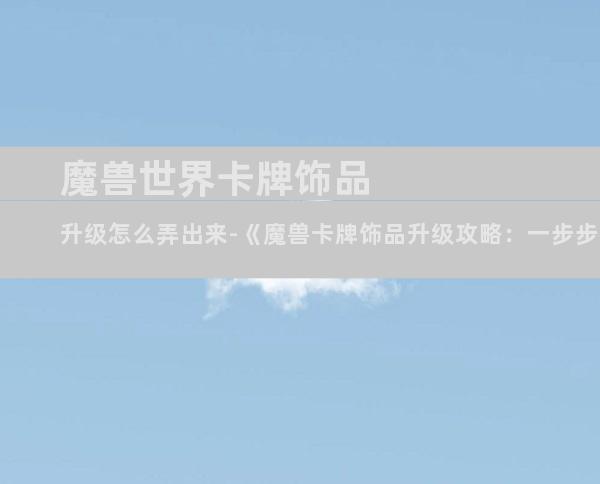 魔兽世界卡牌饰品升级怎么弄出来-《魔兽卡牌饰品升级攻略:一步步轻松提升战力》