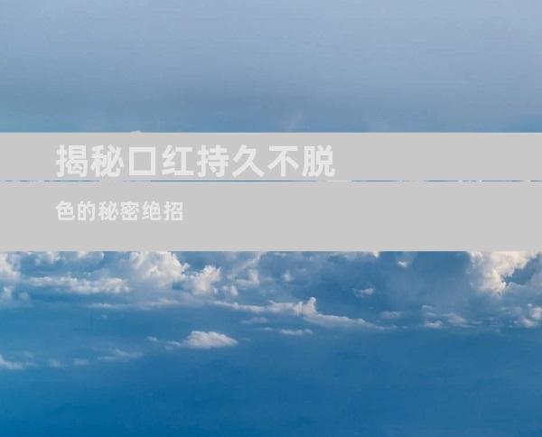 口红不沾杯不掉色的终极秘诀!妆容持久,永不脱色爱美之心,人皆有之。精致的妆容能为女性带来自信和美丽。但口红作为妆容中的点睛之笔,却常因沾杯掉色而让人烦恼。本文将为您揭晓口红不沾杯不掉色的终极秘诀,让您