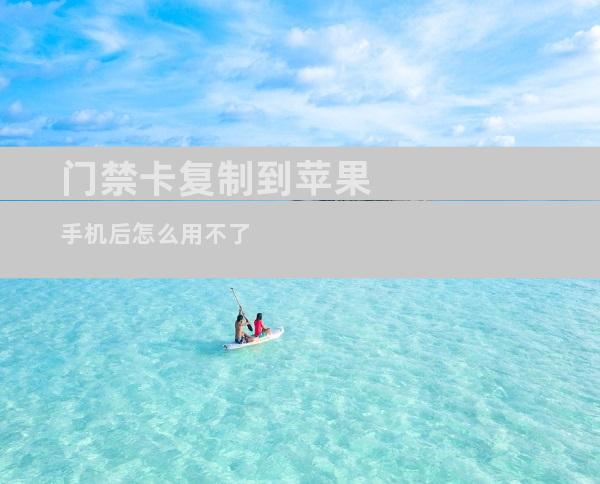 门禁卡复制到苹果手机后无法使用,原因可能是多方面的。以下对常见原因进行逐一分析,并提供详细的排除指南:1.NFC功能未启用确认苹果手机是否支持NFC(近场通信)功能。进入“设置”>“通用”>“NFC”