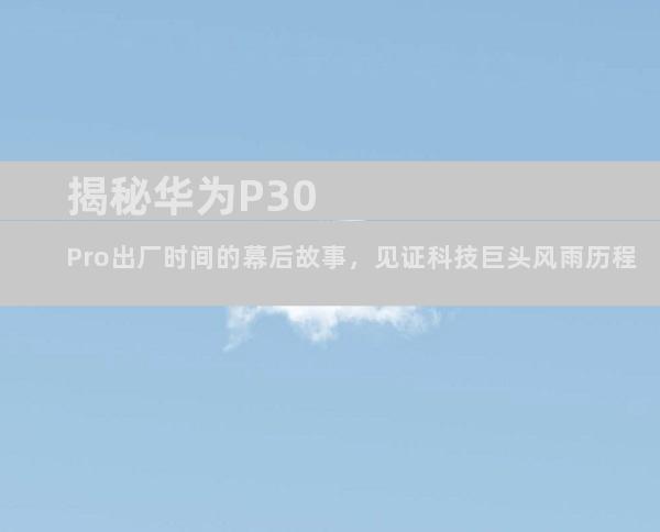 揭秘华为P30 Pro出厂时间的幕后故事,见证科技巨头风雨历程